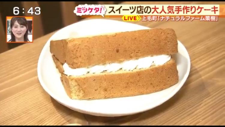 おススメは「いちごのシフォン」。イチゴを練り込んだほんのりピンク色の生地に、生クリームをサンドしています。「見た目(の印象)よりも、数倍濃いイチゴの味がします!おいしいです~」とカイラ君。他にもレモン、チョコレート、キャラメルなどのシフォンケーキや、季節のフルーツを使ったケーキなどが揃っています。
