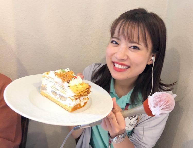 大人気の「ミルクレープ」 1ピースでも篠﨑リポーターの顔と同じくらいの大きさ!