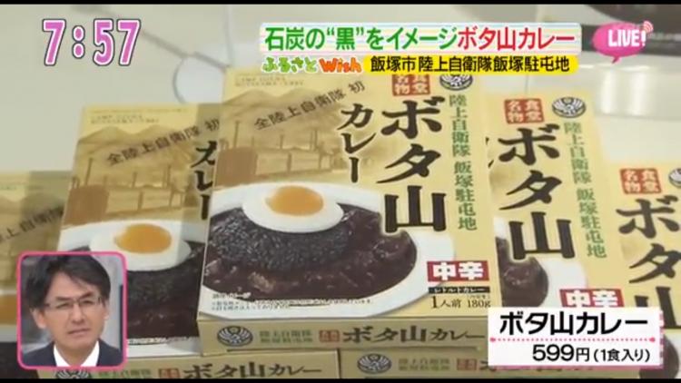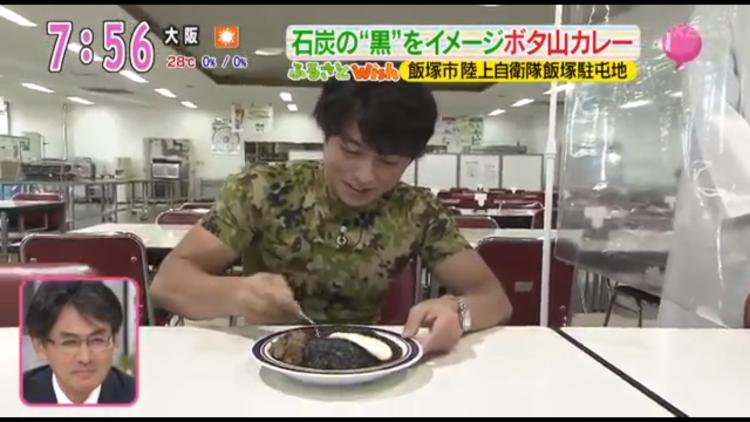 それが飯塚駐屯地名物メニューの「ボタ山カレー」。竹炭ご飯でぼた山を、サイコロステーキで石炭を、目玉焼きで炭坑節にも登場するお月さまを表現。ルーは、各種香辛料を使って仕上げる本格カレーです。2008年、飯塚駐屯地の名物料理を作って士気を上げようという試みで開発されたと言います。今では食堂の一番人気ですが、残念ながらお代わりは不可。というのも、お代わりできると、後で来る人たちの分がなくなってしまうからだそう。「今日はボタ山カレーだ♪」と楽しみにしている隊員も多いといいます。