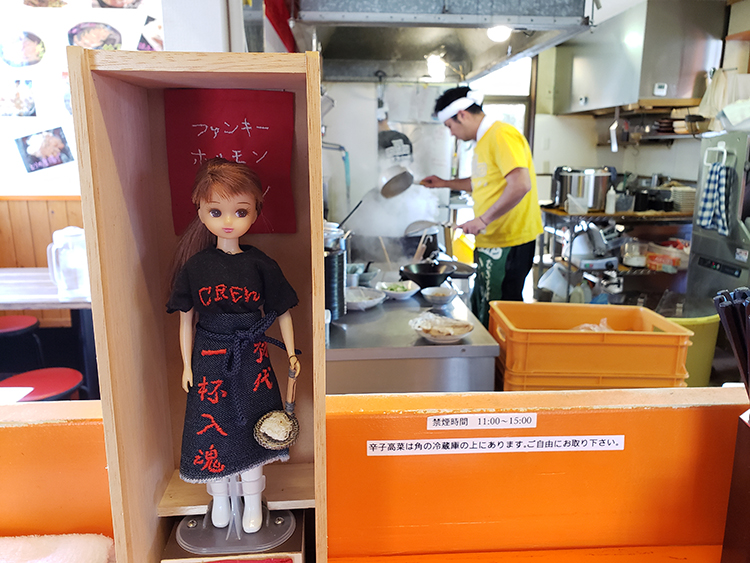 “一杯入魂”“ラーメン”“ファンキー”の暖簾に、真っ赤な看板が目を引く