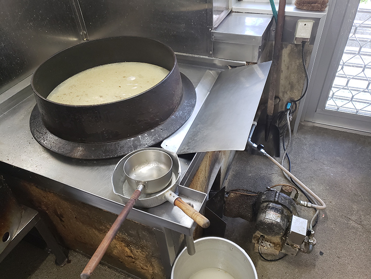 そして、未だ燃料に灯油を使っているのも特徴。厨房内はガスだが、奥のスープ室には灯油バーナーの強い火力で炊く巨大な羽釜が据えてある。