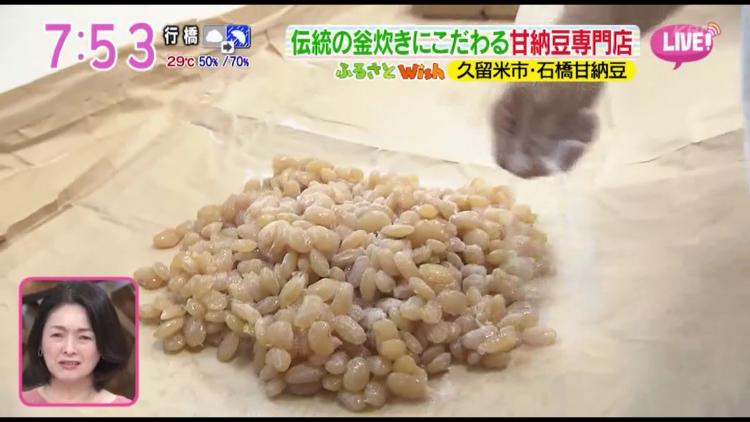 福岡県久留米市の「釜炊き 石橋甘納豆」は、1950年に同市で創業。豆を水につけるところから豆煮、蜜漬け、砂糖掛けまで、一貫して職人の手作業にこだわる専門店です。