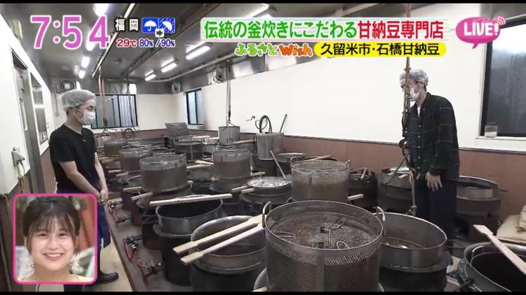 実は、甘納豆を食べたことがないというリポーターの田島芽瑠さん。イチ押しの「釜炊き手作り甘納豆 きなこ花豆」をいただきます。一粒がめちゃくちゃ大きい!砂糖はまぶしておらず、きなこと蜜の甘味だけで作り上げるといいます。