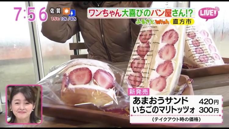 シンプルな「食パン」が一番人気。生地作りにこだわり、国産小麦を使用し、油脂はバターのみ。新作の「あまおうサンド」と「いちごのマリトッツォ」は、中尾さんの友人(直方市在住)が作っている”あまおう”を使っているとのこと。見えている部分だけでなく、中にもイチゴがたっぷり使われています♪