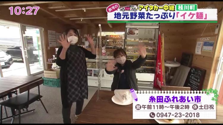 「糸田ふれあい市」のイチ押しは、手作りの「おかつ味噌」を使った「おかつバーガー」(※平日のみ提供)。地元の米と大豆、赤穂塩を使ったみそが味の決め手です。早速、試食したリポーターの岡部来亜は「辛い、辛い!」とびっくり?!実はおかつ味噌に国産トウガラシをプラスした「母ちゃんのサラダ味噌」を使っているそう。さらに青ジソなどを合わせ、さっぱり食べられる和風バーガーに仕上げています。
