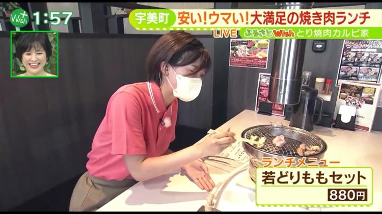 そして、「とり焼肉カルビ家」では、最近TikTokでバズっているという話題のランチメニューが・・・それは『牛ステーキ丼 肉大盛(1518円)』(トップ画像)。なんと300グラムの牛バラ肉のステーキは、ご飯が見えないくらいボリュームたっぷり!ソースをかけて、お好みでワサビをつけていただきます。試食をしたアイタガールの牛島ひかりリポーターは「かめばかむほど、肉汁があふれて美味しいです!」と話します。
