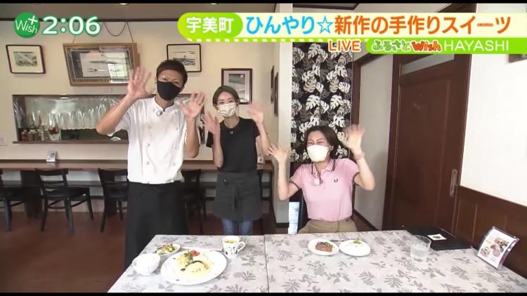 深川真志シェフ(左)と妻の聡美さん(中央)、アイタガールの牛島ひかりリポーター(右)