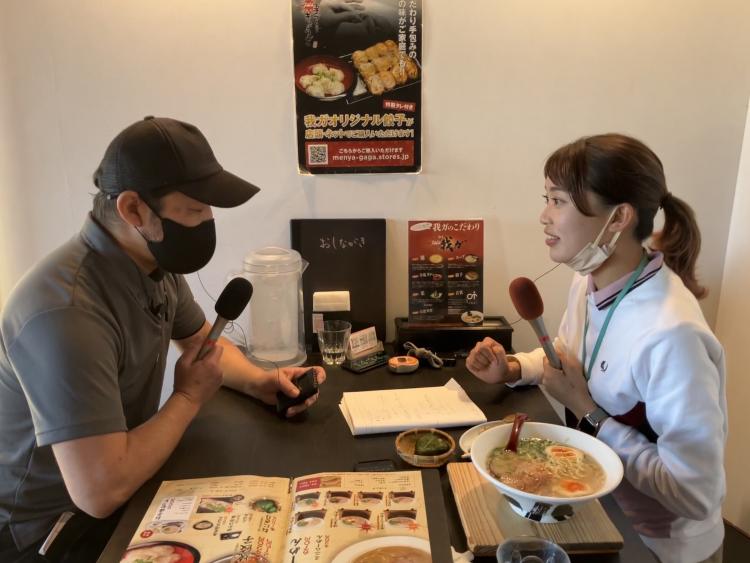 「麺屋 我ガ」原口勝也さん(左)、原実記リポーター【アイタガール】(右)