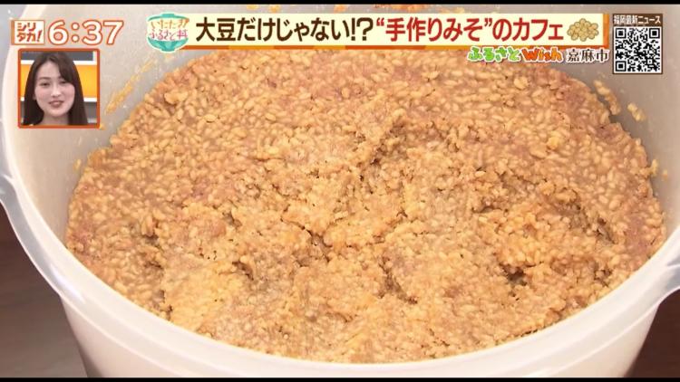 極上の嘉穂牛のローススライスをゲットした石井裕二リポーター。ふるさと丼を作ってもらうべく訪れたのは「しあわせ味噌カフェLadybug」です。ここは手作りみそを中心に、発酵食材の料理を提供しているカフェ。今回、嘉穂牛に合わせるのは、なんと「ひよこ豆」で作ったみそ!去年の7月に仕込み、今が食べ頃だと言うひよこ豆のみそを試食した石井リポーターは、その甘味にびっくり!代表の久保美和さん曰く「ひよこ豆の甘さもあるんですけど、通常12パーセントくらいの塩分でみそを作るのですが、私は5パーセントで作ってます」とのこと。美味しさの秘密は原料と塩加減にあるんですね!
