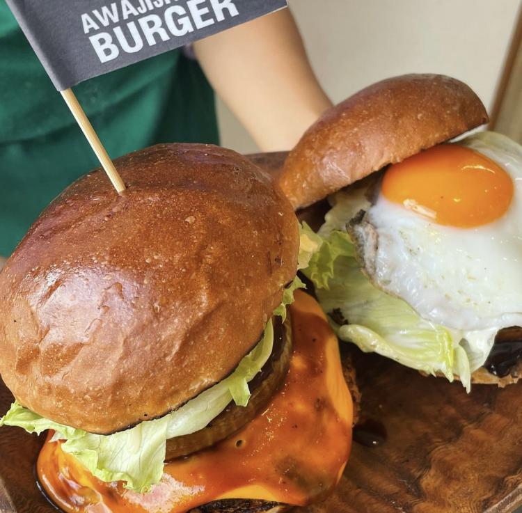 牛肉100%のパティに加え、淡路島産の大きな甘~い玉ねぎを使う「淡路島バーガー」。ボリュームたっぷり!