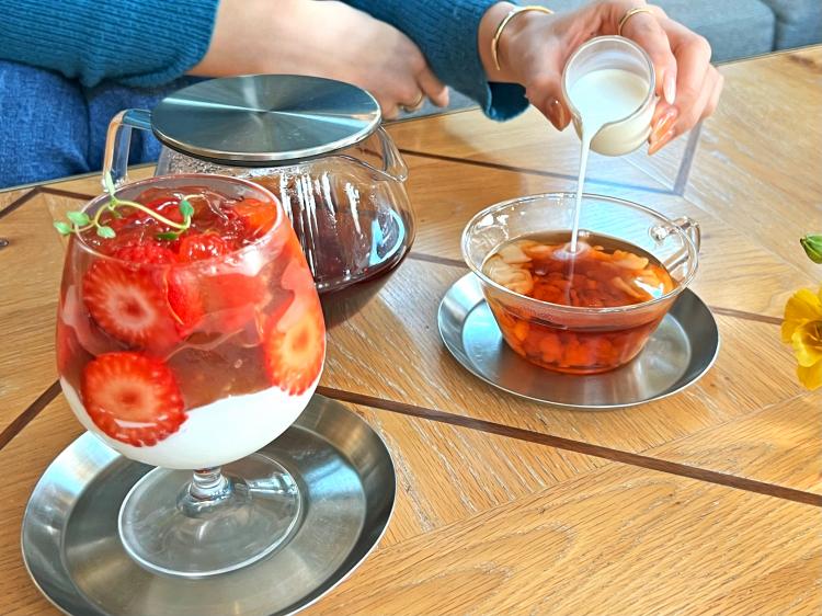 ジャスミンとバニラのさっぱりとしたジュレに、ミルク感たっぷりのパンナコッタがよく合う!