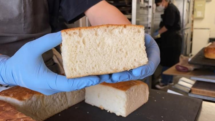 オリーブオイルを高配合して、ふわふわしっとり食感に。断面からもふわふわ感が伝わります♪