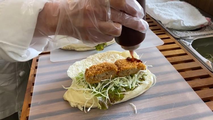 「高校が近くにあるので、安くておなかいっぱいになれるパンがあるといいなと思って」と夫の浩さん。たしかにボリュームたっぷり!