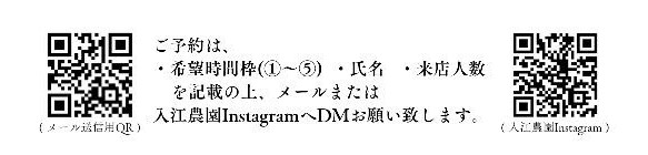 14:00~/17:00~/18:30~ 各回15人。完全予約制。予約はメール、または入江農園のインスタグラムで受け付けています。