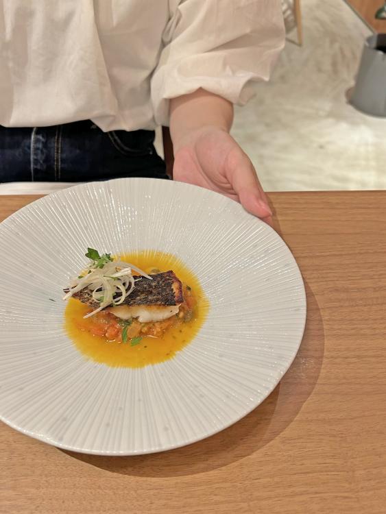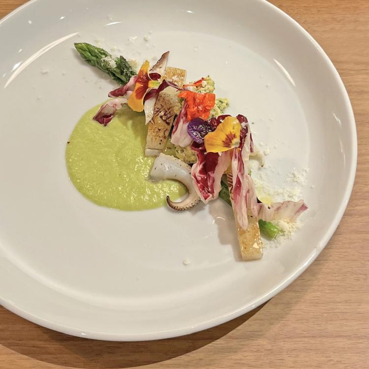 『甲イカとアスパラガス 玉子とチーズのソース』。