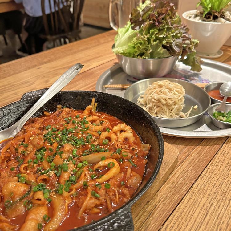 イカと豚肉と甘辛ヤンニョムダレがやみつきすぎて。リピ確定。