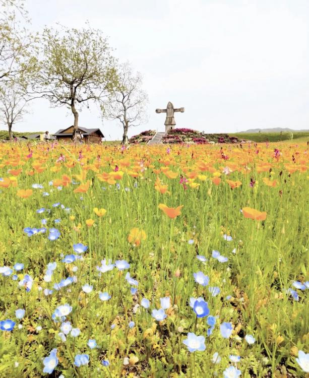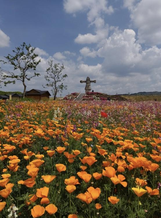 ハナビシソウやネモフィラ、ポピー、月見草、ナデシコ、春のコスモスなど、これから約1カ月間、花の種類が変わりながら次々に見頃を迎えます。