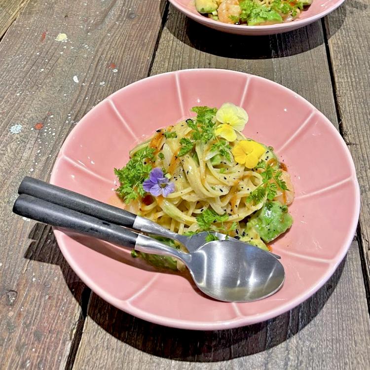 これがほんっとに顎が落ちる。塩麹と梅肉ってパスタに合うんだ!と革命。