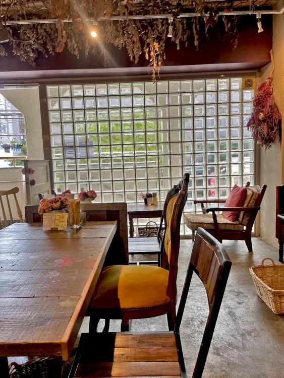 お花と暖かい木製の家具で迎え入れてくれるお店。