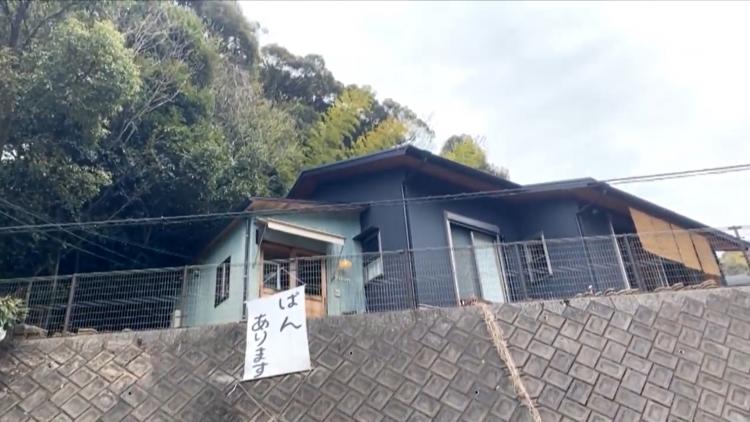 山道を登っていくと、「ぱんあります」の白い旗が揺れています。