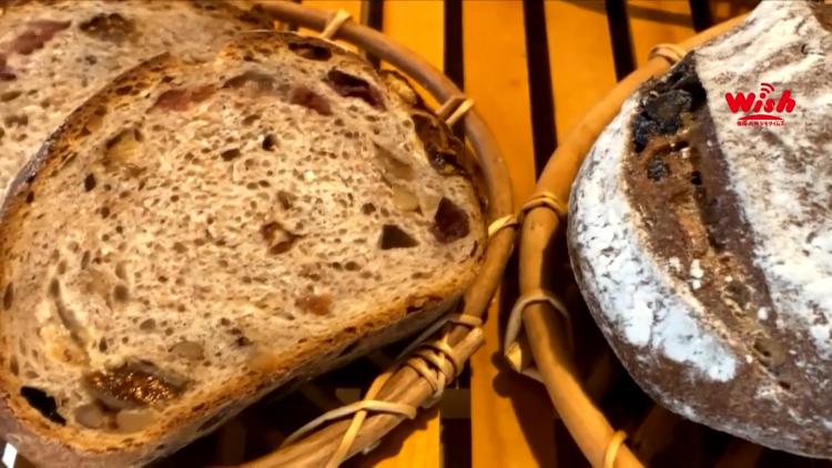 天然酵母、全粒粉を使い、ドライフルーツやナッツがたくさん入っています。