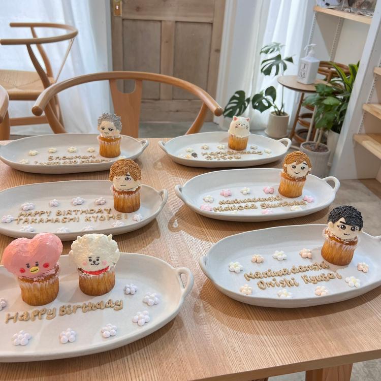 見るだけでも「可愛い〜!」と叫びたくなる唯一無二のこのプレートは、すべて“厨房の妖精さん”(ご主人)が一つ一つ丹精込めて作っているマフィン。ここ数年、日本でも韓国発祥のセンイルカフェ(推しアイドルの誕生日イベント)を頻繁に目にするようになりましたが、ポラムダルではひと味違った推し活ができると、韓国アイドルだけでなく日本のアイドルやアニメファンにも広まっていったそう。その予想外の反響に、ご夫妻もビックリしたのだとか。ちなみに、この手の込んだプレートは要事前予約&オプションによって追加料金などが発生するので詳細は店舗へお問い合わせを。