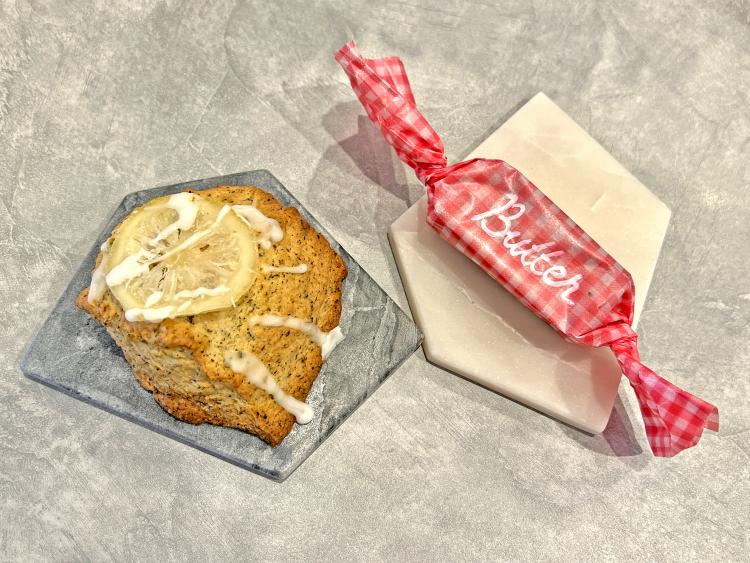 スコーンもかなりボリュームがあって優しい味。日替わりで数種類準備しているそうなので、クロッフルやプリンなどを店内で楽しんで、バターバーやスコーンはお持ち帰りするのもアリですね。