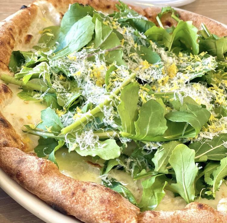 え?皮!?と思うかもしれませんが、400~500℃の薪窯で一気に焼き上げる本格ナポリピッツァのカリッ!もちっ!とした塩味の効いた生地に、爽やかながらも甘みのあるレモンの皮がめっちゃ合う!一度食べるとこれはもう…ハマっちゃいます!