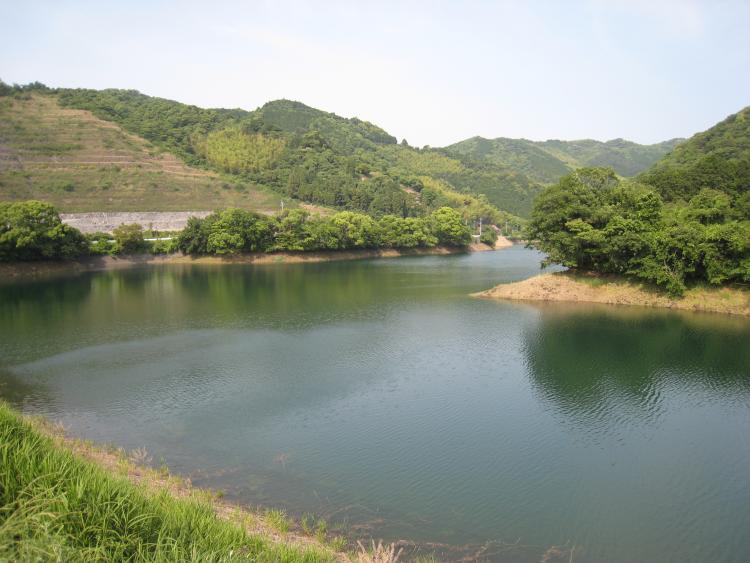 県内で唯一「ため池百選」に選ばれている「蒲池山ため池」(山川町蒲池山ため池上流)。