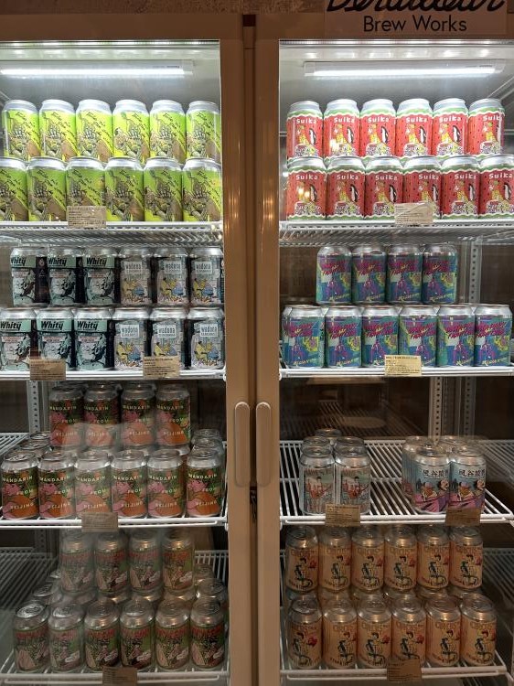 お店の壁際には可愛いパッケージのクラフトビールたちがズラッと!