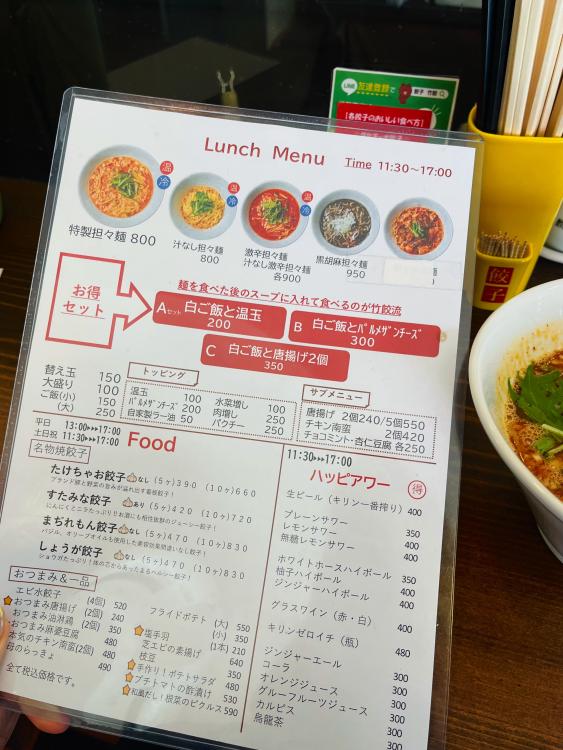 餃子屋さんだけど、ランチは坦々麺がメインみたい◎