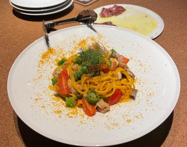 自家製手打ちパスタの『鯵とししとうのペペロンチーノ』。