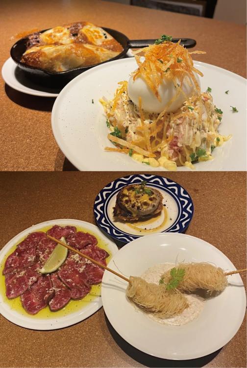 carboのポテトサラダとトリュフの餃子。