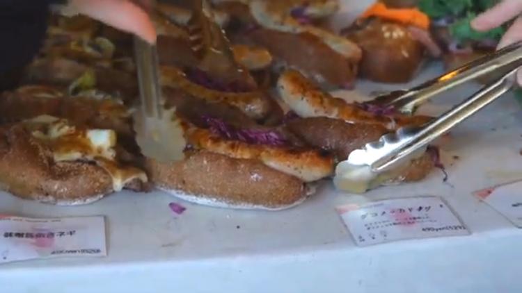 一番人気は店内の炭火で焼き上げたオリジナルソーセージをはさむ