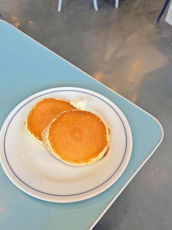 子供の頃に夢見たようなホットケーキが目の前に!分厚くて真ん丸で、夢のような光景、、‼︎