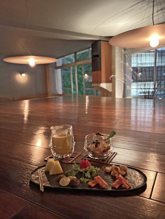 フルーツもついたお洒落なお通しに、洗練された上品なドリンク達。