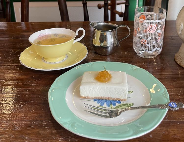 私は、ハーブティーとレアチーズケーキを注文しました。
