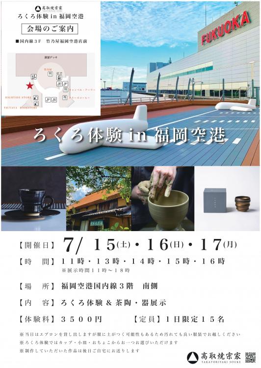 7月15日(土)から17日(月・祝)の3日間、「ろくろ体験in福岡空港」が初開催されます。