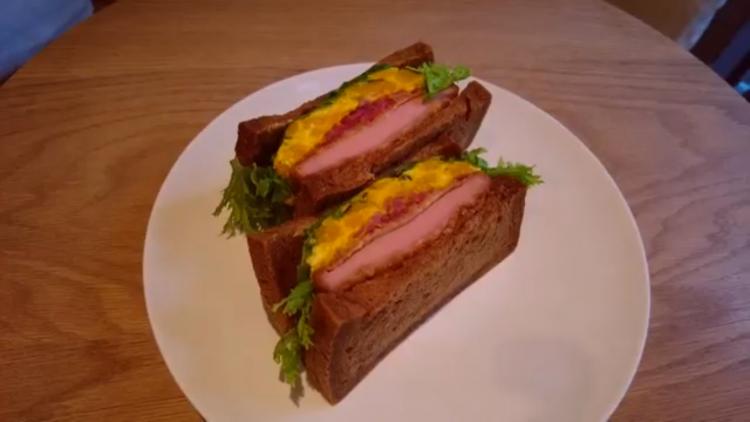 夏限定!『厚切りハムカツとかぼちゃサラダサンド』(486円)