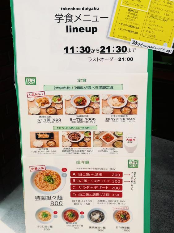 その名も『学食メニュー』。夜9時までオーダーできるのがありがたい。