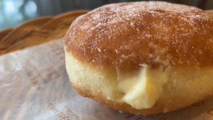 揚げパンに自家製クリームがたっぷり詰まっています。