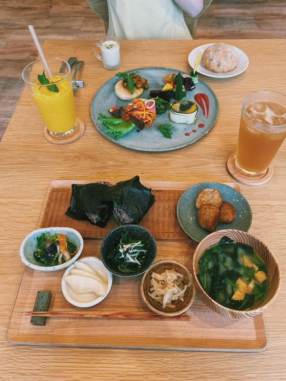 『ひとやすみ』の玄米おにぎりとおばんざいセットと、