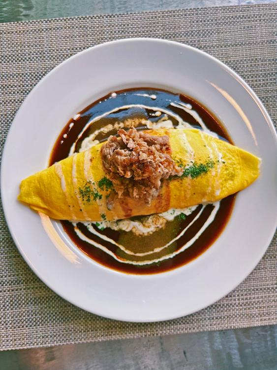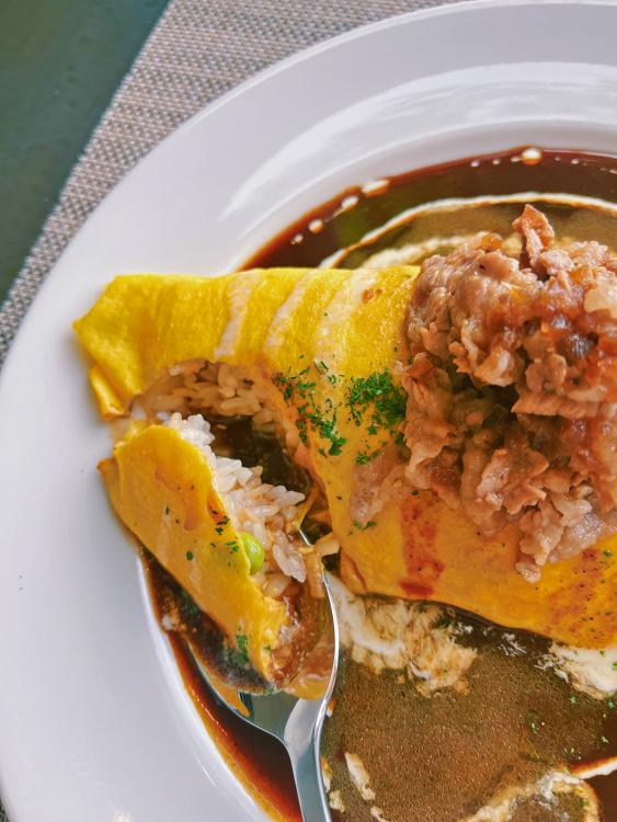 念願の!丸いお皿に載せられたツヤツヤのビーフオムライスにうっとり。