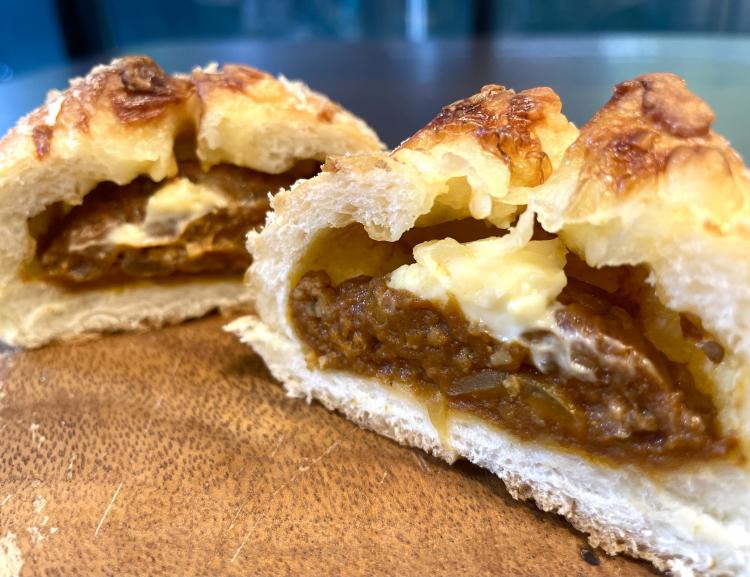 橋本さん手作りのカレーを包む「カレーパン」(194円)は、油で揚げないこだわりのパン。中にマヨソースをちょこっと入れることでマイルドになって、子どもでも食べやすいと人気が高まっています。