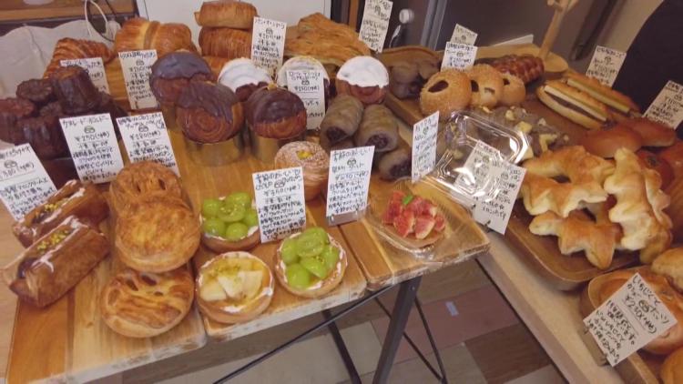 『お客様が見て楽しんでもらえるパンを作るようにしています』と店主の保田稔夫さん。