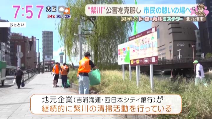 環境改善活動は現在も継続されています。地元の吉浦海運と、その活動に賛同した西日本シティ銀行は紫川周辺の清掃活動を継続的に実施。市民の力でよみがえった紫川は、今では北九州を代表するシンボルでもあり、多くの市民が集う憩いの場所になっています。