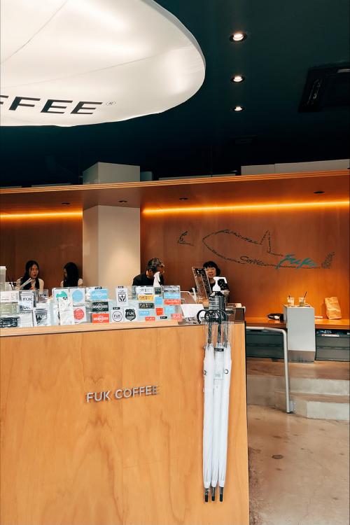 TシャツやステッカーなどのFUK COFFEEオリジナルグッズも沢山あって、