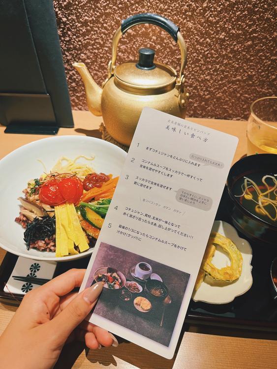 御膳にのって登場♪ ピビンパップに玄米と彩鮮やかなナムルがたっぷり入っていて嬉しい◎