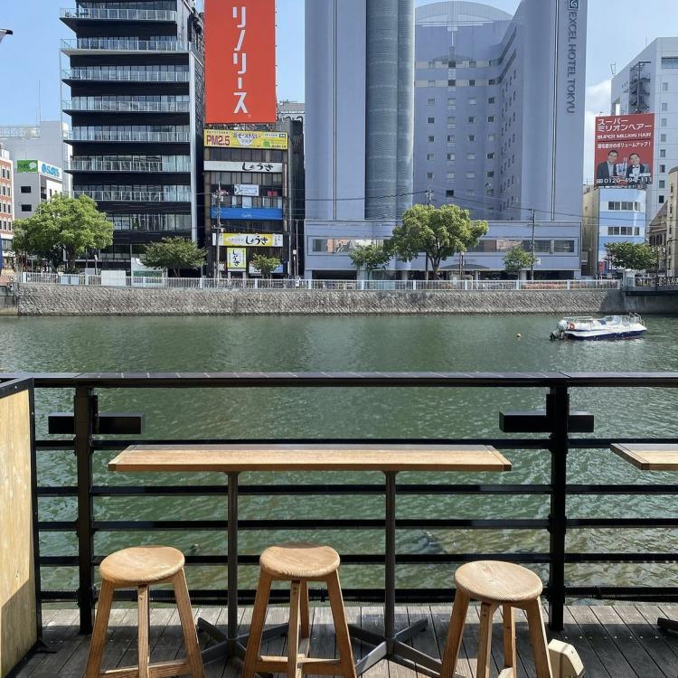 中洲のリバーサイドを眺めながら、美味しいスイーツを食べる。