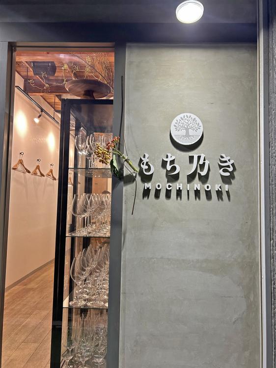 渡辺通駅より徒歩5分。春吉にある『もち乃き』。コンクリートと木目基調の大人の落ち着いた空間。1階はカウンター。2階にテーブル席も。